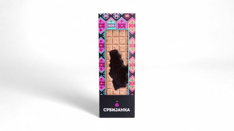 Predstavljamo vam jedinstvenu poslasticu – “Srbijanka crna čokolada sa malinom”, koja ne samo da zadovoljava vaše nepce, već i donosi pravi vizuelni doživljaj u obliku naše prelepe zemlje Srbije.