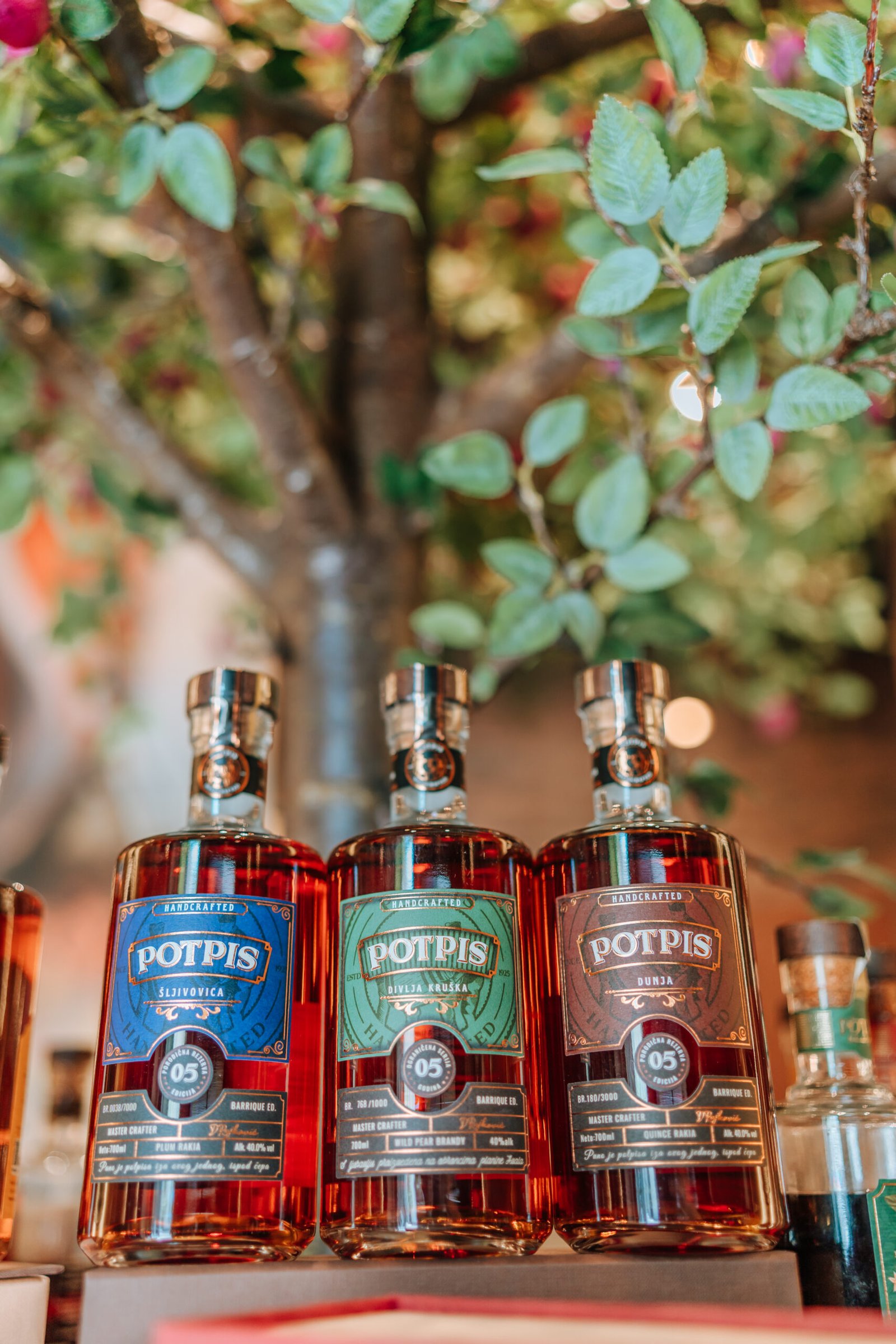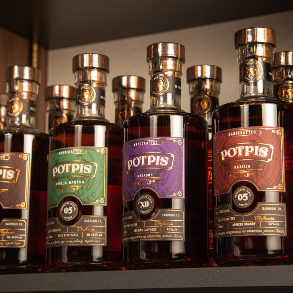 U destileriji Potpis proizvode se strogo ograničene količine rakije. Ne zbog ograničenja u mogućnostima, već zbog svesnog izbora. Svaka serija nastaje iz najkvalitetnijeg voća, iz samo jednog kazana na drva, i samo te godine. Nekada 1000 boca, nekada 2000 – ali nikad više od onoga što priroda i zanat mogu da pruže bez kompromisa.