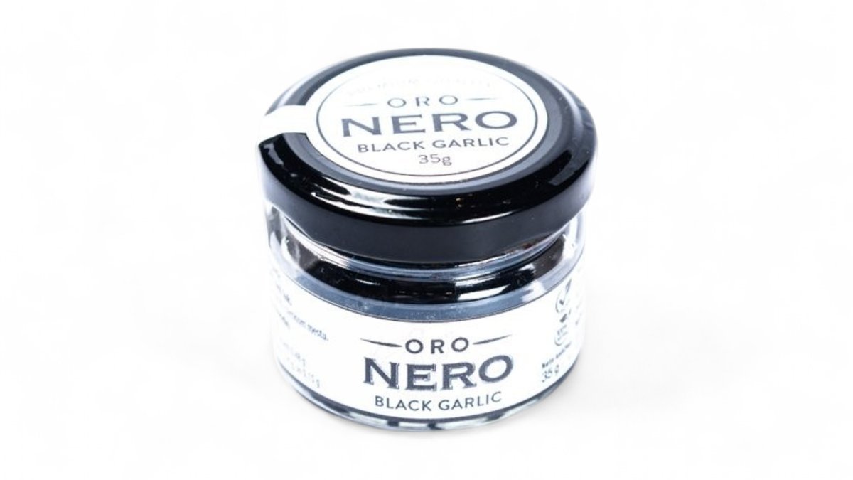Oro Nero Black Garlic su čenovi fermentisanog belog luka koji nastaju odležavanjem belog luka u specijalnim komorama, na odredjenoj temperaturi i vlažnosti vazduha, bez dodavanja aditiva, veštačkih boja i aroma. Proces traje oko 30 dana, nakon čega čenovi dobiju tamnu boju, slatkasti (umami) ukus i želatinastu teksturu. Može se jesti direktno iz teglice ili u kombinaciji sa suvim/koštunjavim vocem. Odlično ide uz paste i pice, kao dodatak svim vrstama mesa, može se naći kao deo sosa/namaza kao što su majonez ili humus. Ne treba ga dugo termički obrađivati, već je najbolje dodati ga dok je jelo vruće/toplo.