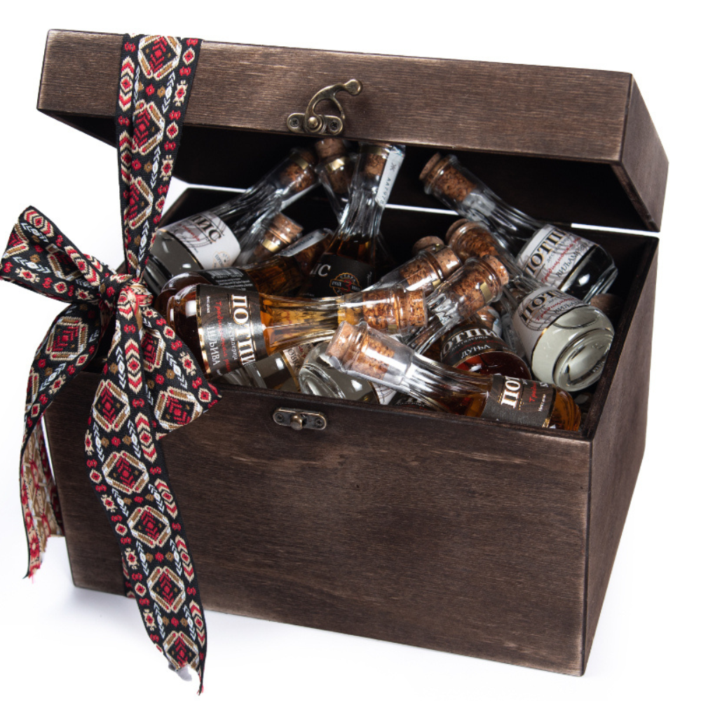 Poklon pakovanje sadrži: Potpis Šljiva Tradicional čokanj x10, Potpis Dunja Tradicional čokanj x10, Potpis Kajsija Tradicional čokanj x10 i Potpis Viljamovka Tradicional čokanj x10.