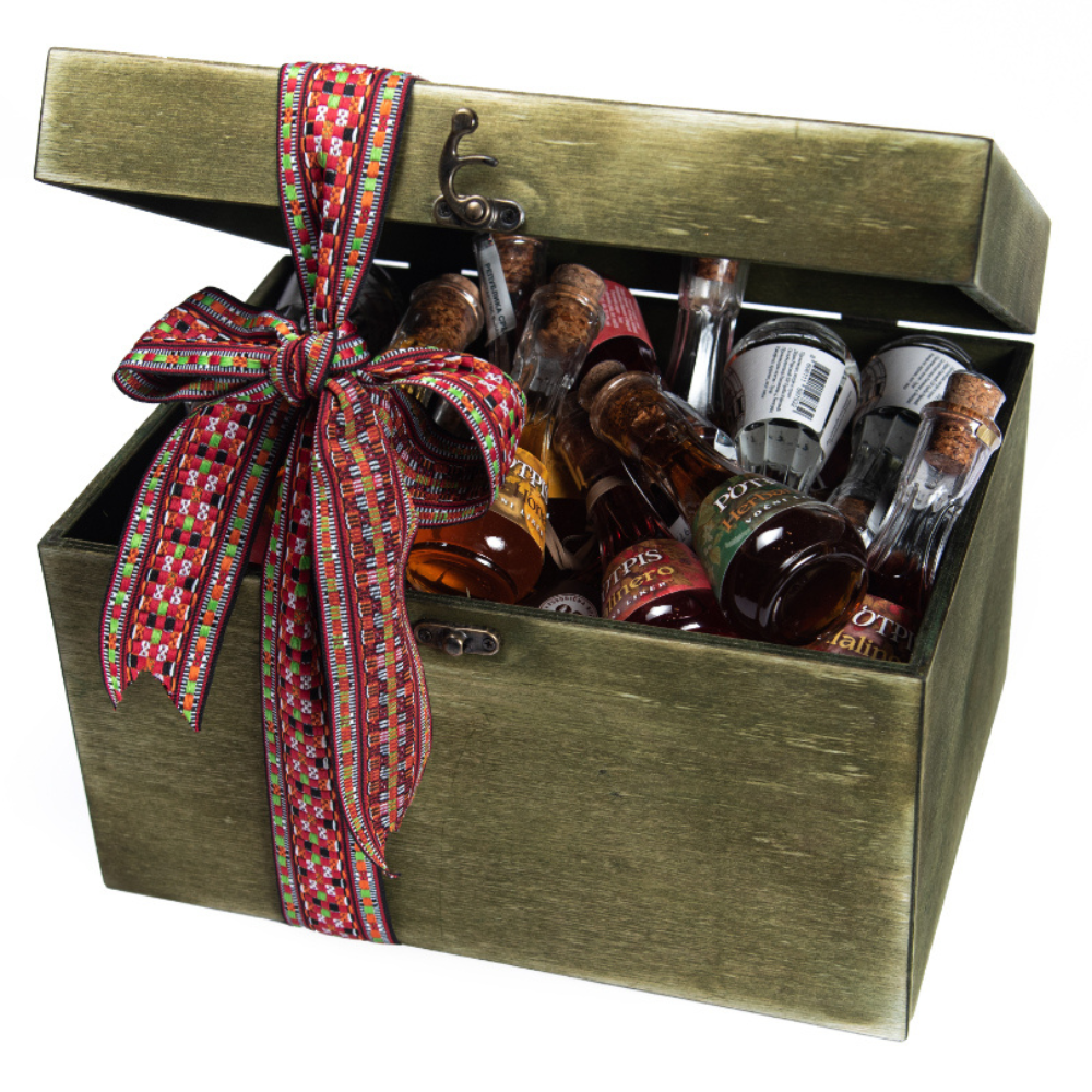 Poklon pakovanje sadrži celokupan porfolio Potpis barik serije rakija, tradicional serije rakija i likera,