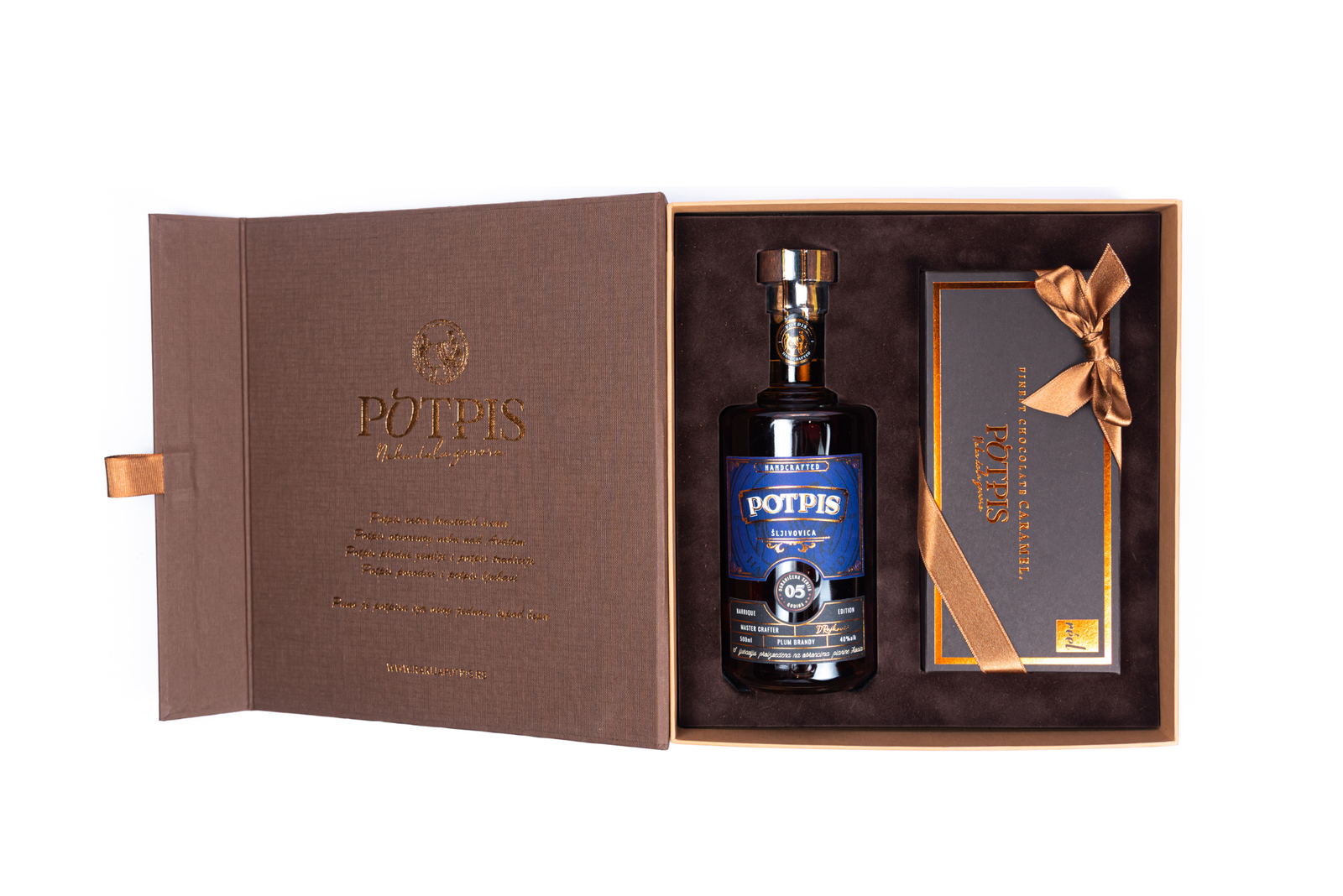 Potpis rakija sa ukusom šljive 500ml u luksuznom poklon pakovanju sa bombonjerom.