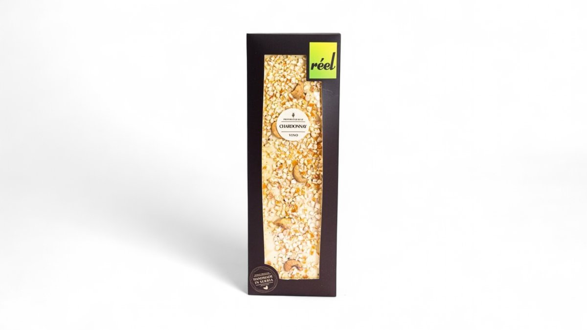 Bela čokolada 28% indijski orah, kandirana kora narandže, bourbon vanila. Preporučuje se uz Chardonnay vino.