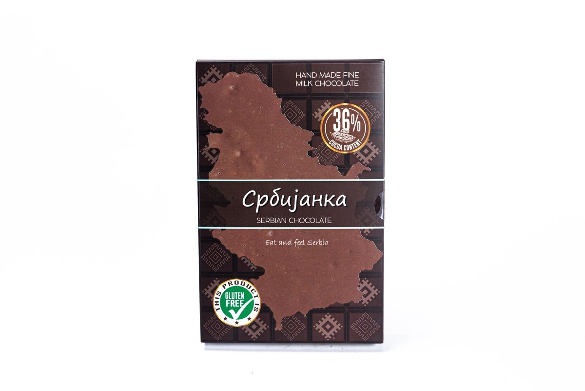 Predstavljamo vam ponosnu poslasticu – “Srbijanka mlečna čokolada”, čija prepoznatljiva forma odražava srpski duh i predstavlja jedinstvenu simboliku u svakom zalogaju.