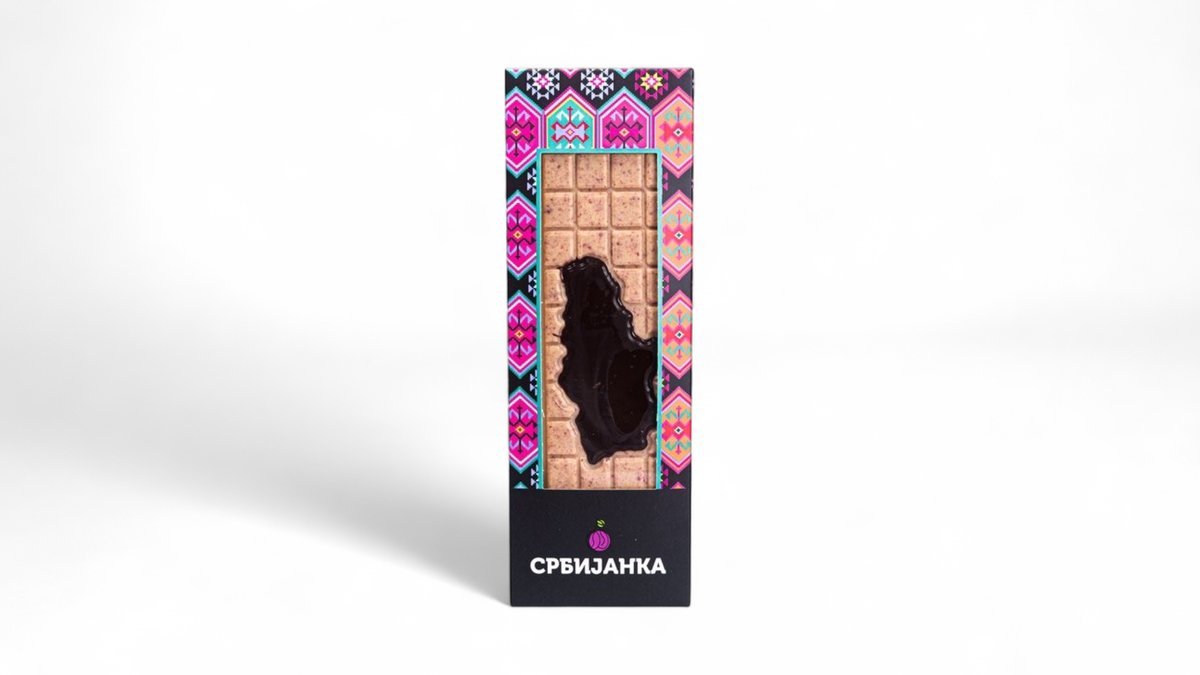 Predstavljamo vam ekskluzivnu poslasticu – “Srbijanka tabla”, bela čokolada težine 110g, oblikovana prema konturama Srbije, obogaćena liofiliziranom malinom i ukusnim dodacima crne čokolade.