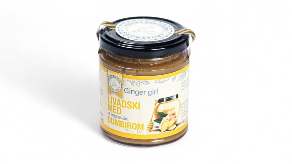 Organski đumbir u sirovom vrcanom livadskom medu kombinuje moćne zdravstvene prednosti i prefinjeni ukus. Deluje protivupalno, antibakterijski, poboljšava imunitet i reguliše nivo glikemije. Bez glutena, laktoze, GMO, veštačkih boja, ukusa, konzervanasa i dodatih aroma i šećera. Savršen je uz čaj, vafle, palačinke, sladoled ili tosto, pružajući jedinstvenu gastronomsku uživanciju.