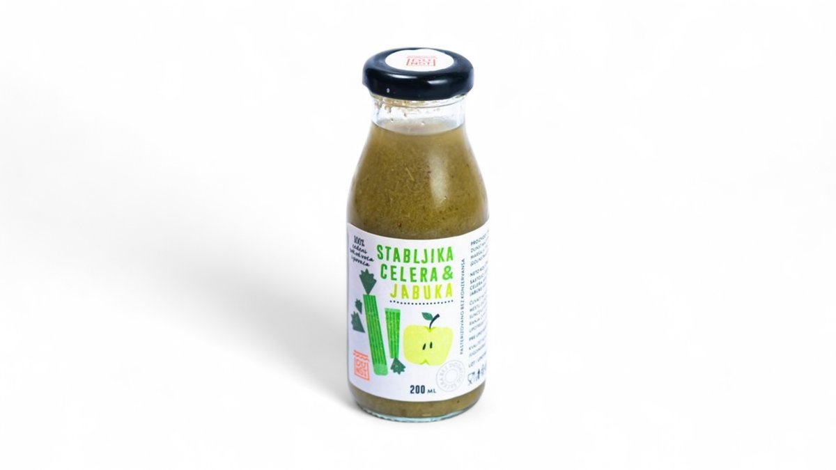 Sok od celera i jabuke je osvežavajuća, 100% prirodna i zdrava kombinacija, koja spaja blagost jabuke sa osvežavajućim ukusom celera, donoseći prirodnu ravnotežu ukusa i hranljivih sastojaka. Savršen je za detoksikaciju ili kao brzinski energetski napitak bogat vitaminima i mineralima.