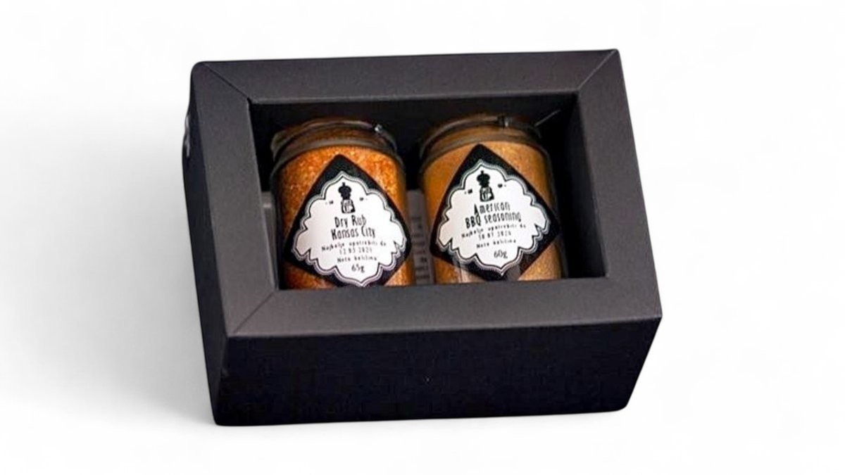 Paket sadrži set američkih mešavina začina za meso na roštilju: Chef Joe Barbeque i Texas rub.